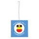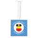 Un ángel vestido con la bandera de Alemania en este cubo adorno para la decoración de Hanukkah. Diseñado para familias de múltiples religiones para celebrar las fiestas. El ángel de la bandera alemana de Hanukkah vuela en un centro blanco de plazas calumniosas sobre un fondo azul de plazas calumniosas. Añadir un nombre para personalizar. Añade el año al personalizar. O bien, añade tu propio texto
