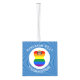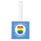 Ángel de piel oscura, podría ser latinoX o asiático, usa la bandera arcoiris del Orgullo Gay en este cubo adorno para decoración Hanukkah. El Ángel del Orgullo Gay Hanukkah para LGBTQ está dentro de un círculo de plazas blancas rodeadas por un fondo de cuadrados azules y sarcásticos. Agregue un nombre para personalizar y personalizar con el año. O bien, agrega tu propio texto.