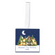 Primeras acuarelas navideñas de los animales de Woodland Animales forestales Pinos Árboles Luna, Starry Sky y Nieve Foto Cubo de Ornamento . Entre los animales para bebés se encuentran: Oso, ciervo, alce, mapache, conejo conejo conejo, zorro y búho con vegetación forestal. Añadir nombre. 3 Fotos. Texto azul.