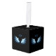 Adorno Cúbico Blue Glowing Angel Wings on black background