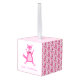 Este impresionante adorno de cubos de la Primera Navidad presenta una imagen de arte digital de una niña bonito rosada Fox con una nariz negra y bigotes, cola y panza rosada y hasta dedos y dedos de pies rosados. Un lindo diseño para celebrar a una bebé. Hay texto personalizado para que pueda incluir un mensaje.