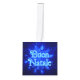 Un enjambre de copos de nieve fractales azules. El texto italiano que dice "Buon Natale" aparece en azul brillante y blanco. Añade tu propio texto adicional.