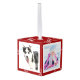 These little photo cubes are a lovely way to share your memories! This cube features a bright red background with a white snowflake pattern and placeholders for four (4) photos. Each photo you upload will be sized to fill the area within the white square frame (so photos with the subjects in the center work best). Give it a try!