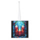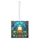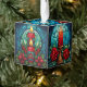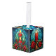 Aquí tiene el beneficio de cinco imágenes de vidrio manchado en 5 lados de este adorno de cubo. El fondo es un tono azul claro