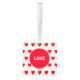 Corazones, oso polar y caligrafía sobre el blanco Cubo Ornamente. Oso polar significa fuerza espiritual. El blanco es el color de la pureza y el rojo es el color del amor que viene del corazón. ¡Que tengas Navidades significativos! Este adorno también se puede dar como regalo para San Valentín o cualquier otra ocasión.