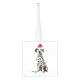 A fun Christmas ornament or a way to remember your beloved Dalmatian each year you decorate the tree, this cute cube ornament has a place for your dog's name and two photos with a light gray woof word art background on white.