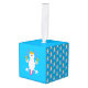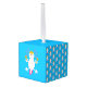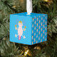 Este impresionante adorno de cubo muestra una imagen de arte digital de un lindo axolotl, un salamandra mexicano, con sombrero mexicano y maracas temblando. El axolotl es rosa pálido, con doraduras de plumaje rosadas brillantes y una cola rosa brillante. Tiene ojos enormes y una sonrisa en su cara. El sombrero es amarillo con un cactus verde en el medio. El cactus está rodeado de chiles y girasoles mexicanos, también llamados Tithonia. Las Maracas son amarillas con flores rojas y verdes y con líneas onduladas.