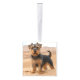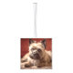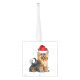 Un adorno navideño divertido o una manera de recordar tu adorado Biewer Terrier cada año que decoras el árbol, este adorable adorno de cubo tiene un lugar para el nombre de tu perro y dos fotos con un fondo de arte de la palabra gris claro sobre blanco.