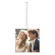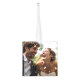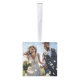 Este elegante adorno de color verde salado incluye tres fotos bodas reemplazables y un monograma floral blanco.