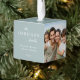 Cubo de fotos de la familia Keepsake con adorno verde de sabio. Personaliza con tres de tus fotos favoritas de este año y tus nombres de pila y de apellido.