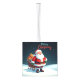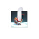 Un caprichoso escenario invernal de Santa Claus, lleno de regalos, en su trineo en medio de un paisaje nevado. El texto "Feliz Navidad" se exhibe elegantemente en colores festivos, añadiendo a la alegre atmósfera de la temporada navideña.