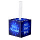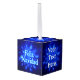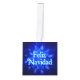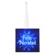 Un enjambre de copos de nieve fractales azules. El texto en español que dice "Feliz Navidad" aparece en azul y blanco brillante. Añade tu propio texto adicional.