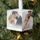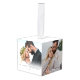 Celebrate the season with this personalized photo cube ornament, designed to hold five favorite photos around the sides. The front panel features a soft white gradient along the bottom with the words “Our First Christmas” and the year displayed below in simple gray serif fonts. You can fill the rest of the cube with family photos, couple photos, pet pictures, or any holiday memories you want to showcase.