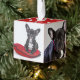 Hermoso adorno de vacaciones de Navidades personalizables con estrellas blancas en un fondo rojo y dos fotos de un bulldog francés o cualquier mascota de su elección. Inserte dos de sus fotos mascotas favoritas en las plantillas. Perfecto para una decoración Navidad de un árbol de Navidad o un regalo perfecto para tu familia o amigos. Genial como mascota. Puede cambiar el color de fondo para que se ajuste a su foto.