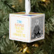 Rayas brillantes Patrón en azul verde rosa sobre fondo blanco, guarnecido naranja. EDAD personalizado, NOMBRE, COSAS FAVORITAS en azul, naranja, amarillo con guarnecido naranja. FOTOS personalizados x 3. Fácil de personalizar a tus propias fotos, texto. Ornamento fotográfico anual divertido para niños, Mascotas, familias o cualquier persona en CUALQUIER época del año. Moderno, Colorido, Divertido. Un Keepsake atemporal. Mezcla y Coincide con bandas enteras / Keepsake / Ornamentos de regalo de fotos de TMCdesign.