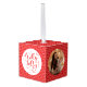 Celebra las alegres vacaciones con tu familia con nuestro adorno de cubo "Navidades Holly Jolly Script 3 Family Photos Red" . Este diseño presenta un elegante marco de guión de navidad con vibrante caligrafía de texto "Holly Jolly", y 3 fotos familiares. Personalízalo con tus propias fotos, nombre de familia y año. Este único adorno le dará un toque elegante a su decoración casera de Navidad.