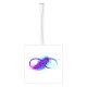 Símbolo infinito con una hermosa pluma pintada de color violeta y azul brillante sobre fondo blanco.