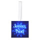 Un enjambre de copos de nieve fractales azules. La lectura francesa de texto "Joyeux Noё l" aparece en azul y blanco resplandeciente. Añade tu propio texto adicional.