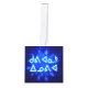 Un enjambre de copos de nieve fractales azules. El texto inuktitut que dice "Kuvianak Innovia" (ᑯ ᕕ ᐊ ᓇ+ᐃ ᓄ ~ - Feliz Navidad), en el alfabeto sílabo adoptado en Nunavut, también aparece en azul y blanco resplandeciente. Añade tu propio texto adicional. A los inuit se les conoce comúnmente como esquimal, pero ese término ahora está desfavorecido pues se considera peyorativo.