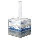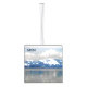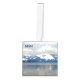 Mirando al este desde Sandpoint, ID a través del lago Pend Oreille (charca uh-ray) en un día de invierno; montañas cubiertas de nieve a lo lejos. El hielo se ha formado en la orilla y se extiende a lo largo del lago. El azul y el gris son los colores predominantes. También aparece un texto de personalizable que dice "IDAHO". Y hay un lugar para agregar texto adicional.