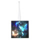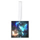 Fabuloso, brillante, azul y amarillo, mariposa nocturna sobre fondo oscuro.