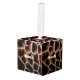 Hazlo personal - El patrón original de impresión animal en este adorno de cubo de madera se hizo a partir de una fotografía original de ZoeSPEAK de una jirafa. El patrón se hace en tonos marrones. Hay un nombre en cada lado del cubo. Este texto está configurado para que usted lo personalize o elimine si lo prefiere.