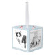 ¡Estos pequeños cubos de fotos son una manera encantadora de compartir tus recuerdos! Este cubo presenta un fondo azul claro con un patrón de copo de nieve blanco y marcadores de posición para cuatro (4) fotos. Cada foto que subas se convertirá en blanco y negro y se dimensionará para llenar el área dentro del marco cuadrado blanco (de modo que las fotos con los sujetos en el centro funcionan mejor). ¡Inténtalo!
