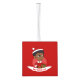 Ornamento navideño con el ilustracion de un lindo sonriente chica afroamericano con un peinado afro, el chica está usando un disfraz de Santa Cláusula con un gorra rojo y sosteniendo un regalo; en un círculo rojo sobre un fondo rojo, con una plantilla de texto editable para su nombre o mensaje
