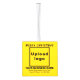 Feliz Navidad! Cubo adorno con mensajes de bienvenida de Feliz Navidad, nombre de su negocio o empresa, logotipo, dirección y número de teléfono. El diseño son textos negros sobre fondo amarillo. Ornamento para decorar el árbol de Navidad en tu tienda, tienda u oficina. Ornamento para saludar visualmente a sus clientes esta temporada de vacaciones y para anunciar su negocio o promocionar su marca. Personalizar y úselo para crear conciencia de marca. Compruebe la apariencia después de cargar el logotipo y escribir textos. Si la apariencia le resulta agradable, puede realizar su pedido ahora. Si necesita cambiar el tamaño y mover el logotipo y los textos para que encajen en este ornamento o en otros estilos que elija, por favor cambie la herramienta de diseño. También puede realizar otros cambios según sus preferencias en la herramienta de diseño, como cambiar el color de fondo, el color de la fuente y el estilo de fuente. Feliz Navidad! Te deseo más ventas esta temporada de vacaciones.