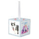 ¡Estos pequeños cubos de fotos son una manera encantadora de compartir tus recuerdos! Este cubo presenta un fondo azul claro con un patrón de copo de nieve blanco y marcadores de posición para cuatro (4) fotos. Cada foto que subas será dimensionada para llenar el área dentro del marco cuadrado blanco (de modo que las fotos con los sujetos en el centro funcionan mejor). ¡Inténtalo!