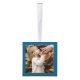 Navidades familiares Keepsake Ornament | Ornamento de cubo azul con 5 fotos. La parte superior está reservada para el nombre y el año de la familia y está decorada con una corona de vacaciones. El círculo interior de la parte superior dice "cometer recuerdos desde (año)". Iniciar una nueva tradición: un adorno de cubo al año puede ser una crónica de la vida de su familia o de su hijo durante tantos años como usted elija.