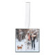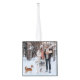 Un elegante y moderno ornamento de vacaciones con una moderna y mínima tipografía cita "todo es alegre y brillante", combinado con un tipo de letra manuscrita para el nombre de tu familia en blanco con un color verde oscuro del bosque en un estilo escandinavo 'scandi'. El saludo, el nombre, el año y el mensaje se pueden personalizar fácilmente para un toque personal. Un diseño moderno, minimalista y contemporáneo que destaca en estas vacaciones. La imagen que se muestra es para fines de ilustracion y sólo se sustituye por la suya. La imagen de marcador de posición es de una joven pareja feliz que recoge madera en la nieve con sus perros, una husky y un terrateniente pequeño.
