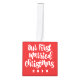 Ornamento rojo del recuerdo del navidad anticuado hermoso con los corazones blancos en silueta.  La ducha, el regalo de boda, o el regalo nupcial perfecto del navidad del recién casado para los pares casados justos en su círculo de la familia y de amigos.  ¡Hace un gran regalo del estreno de una casa para su nuevo hogar, también!  Vea más ornamentos del "primer navidad" en las notas de la canción del corazón aquí en Zazzle.  Hay un vínculo directo de la tienda abajo.