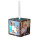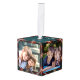 Cubos de navidades adornados con 4 fotos, texto personalizado y tradicional tartán rústico de campo enchapado en blanco y oro verde azul rojo y oro. La plantilla de la foto está lista para que añadas tus imágenes, que se muestran en formato cuadrado, así como tu texto personalizado como, Warm Navidades Wishes and Lots of Love for .. o lo que quieras.