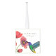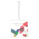 Un colibrí se alimenta de una flor cosmos roja. Esta imagen acuarela ofrece alegría y paz mientras le haces saber a alguien que estás pensando en ellos y agradeciendo a Dios por ellos.