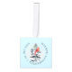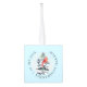 Un encantador primer adorno de Navidad. Personalizar con su foto, nombres y fecha de boda. El diseño está decorado con una acuarela de invierno en tonos azules, con un cardenal rojo y un pino.