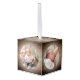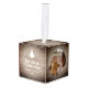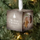 Adorno Cúbico Rustic Wood Baby's First Christmas Name Photo