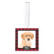 Decoren su árbol o envíen un regalo especial con este adorable adorno de festividad personalizado mascota. Este adorno de navidad mascota cuenta con un rústico panel de mantas de búfalo rojo, etiquetas con nombres de pizarra y cubierta de pizarra, 4 de sus fotos favoritas. Añade la foto de tu perro y personaliza con nombre y año. El ornamento está personalizado con 4 fotos. DERECHOS RESERVADOS © 2020 Judy Burrows, Black Dog Art - Todos los derechos reservados. Rústico Búfalo Rojo Tapado Perro Cachorro 4 Mascota Foto Cubo Ornamento