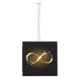 Oro, símbolo de infinito de joyas con estrellas doradas sobre fondo negro. Diseño con estrella dorada.