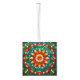 Aquí tiene la ventaja de dos imágenes de vidrio manchado en dos lados de este adorno de cubo. La parte superior es una imagen propia. El fondo es un negro liso.