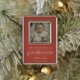 Un tierno guión caprichoso y un diseño moderno para este regalo de ornamento fotográfico. Para personalizar con tu foto de bebé favorita. También puede cambiar fácilmente el color de fondo. Perfecto para celebrar tu Primera Navidad como nuevos abuelos.