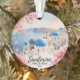 Celebrate a love that spans the globe with this elegant, double-sided ceramic ornament. Featuring a stunning hand-painted watercolor illustration of the iconic blue-domed churches of Santorini, this keepsake is the perfect way to commemorate a destination wedding, a romantic honeymoon, or a dream vacation.
