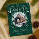 Difunde alegría navideña con esta tarjeta festiva que presenta un lazo dibujado a mano que corona tu foto favorita en un marco circular, creando el aspecto de un adorno navideño festivo. La elegante tarjeta de Navidad en verde y blanco incluye 'Feliz Navidad' en una fuente de escritura a mano y el nombre de tu familia debajo.