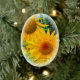 ひまわりをデザインした卵形のセラミックオーナメントです☆ 《テキストは自由にカスタマイズしてください。裏面も自由自在です。》 【Photo】ヒマワリ(向日葵)Sunflower