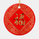 福 Fu Character Red and Gold Chinese New Year Ceramic Ornament.