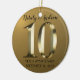 Celebrando 10 años juntos. Feliz décimo aniversario boda. Etiqueta metálica dorada.