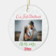 ¡Celebra a tus primeros Navidades como pareja casada con este elegante adorno fotográfico! Personaliza con tu propia foto y el año en que te casaste.
