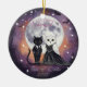 ¡Marca tu primera Halloween comprometida con este adorable ornamento de gatos y búhos! Presenta un diseño caprichoso de un gato negro apropiado y un búho blanco elegante como novia y novio bajo una luna llena, rodeado de murciélagos, estrellas y árboles espeluznantes. Perfecto para los amantes de los animales y los aficionados a Halloween, este ornamento captura su hito romántico. Personalízalo con tus nombres y año (como 2025) por un personalizado. Colóquelo en su árbol o escúchelo como un regalo único, ideal para parejas comprometidas que celebren su estilo. ¡Pida ahora que aprecie este maravilloso recuerdo!