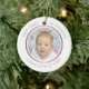 Este adorno navideño personalizado presenta un moderno diseño de oro falso rosa. Personaliza el nombre, año y fotos. Es de doble cara con una foto diferente a cada lado. Esta plantilla funciona mejor con fotos en formato de paisaje con el bebé en el centro.