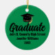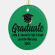 This classic green and black custom senior graduate Christmas ornament features modern typography of your high school or college name for the class of 2026 with your grad photo on the back. Customize with your graduating year under the chic handwritten script and grad cap for a great personalized graduation keepsake gift.